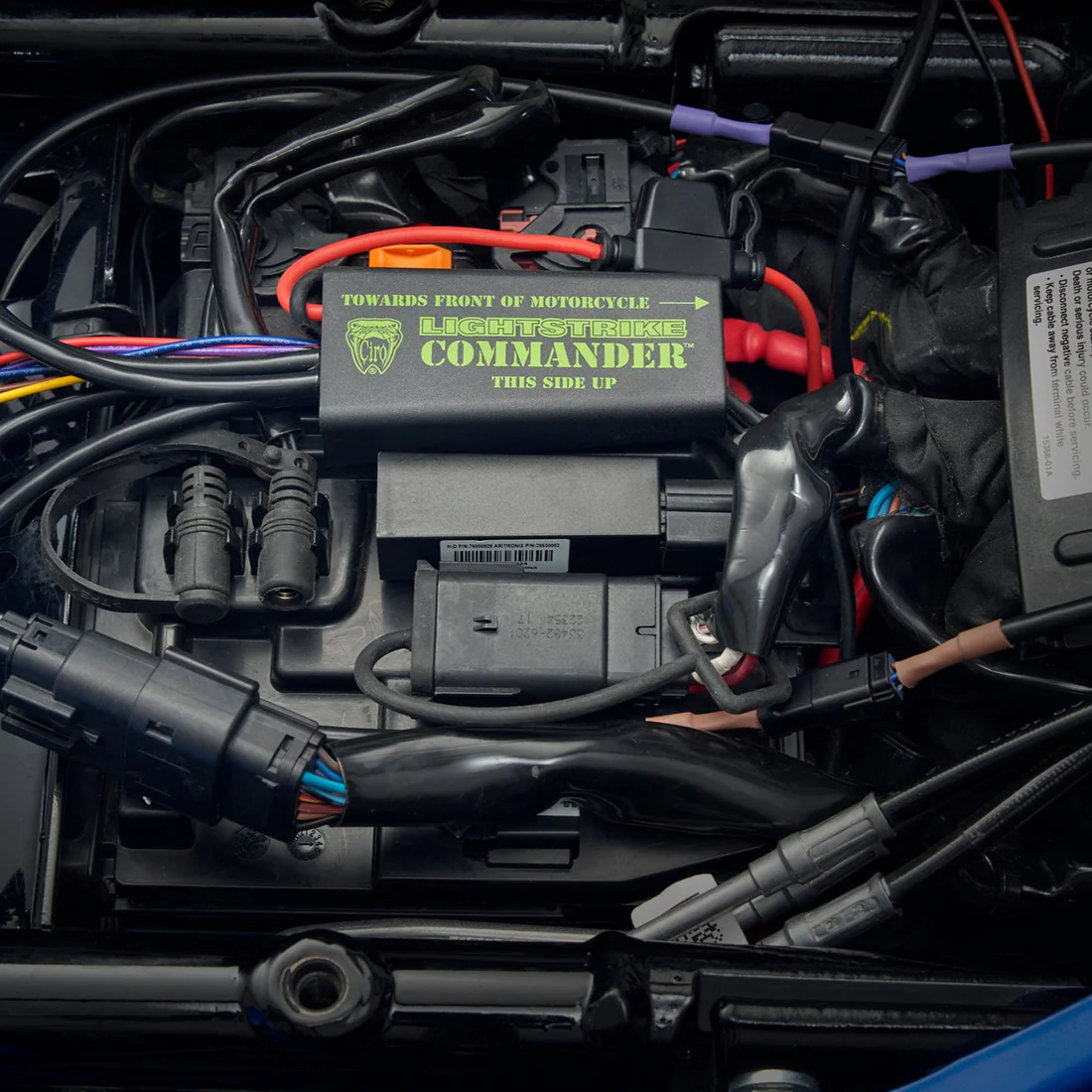Take ultimate control of your Ciro® lighting with the Lightstrike COMMANDER™, a cutting-edge smart controller for your motorcycle. You’ll unlock unparalleled customization for your motorcycle’s lighting all from the free-to-download Ciro Central Hub app where Lightstrike® is accessed. Adjust brightness, colors, turn signal effects, brake modes, and more with a simple tap on your smartphone. Install the Lightstrike COMMANDER and redefine how you light up the road.