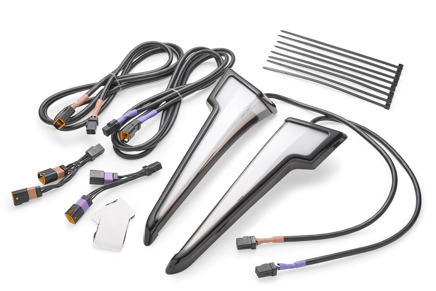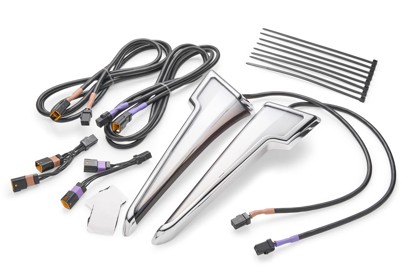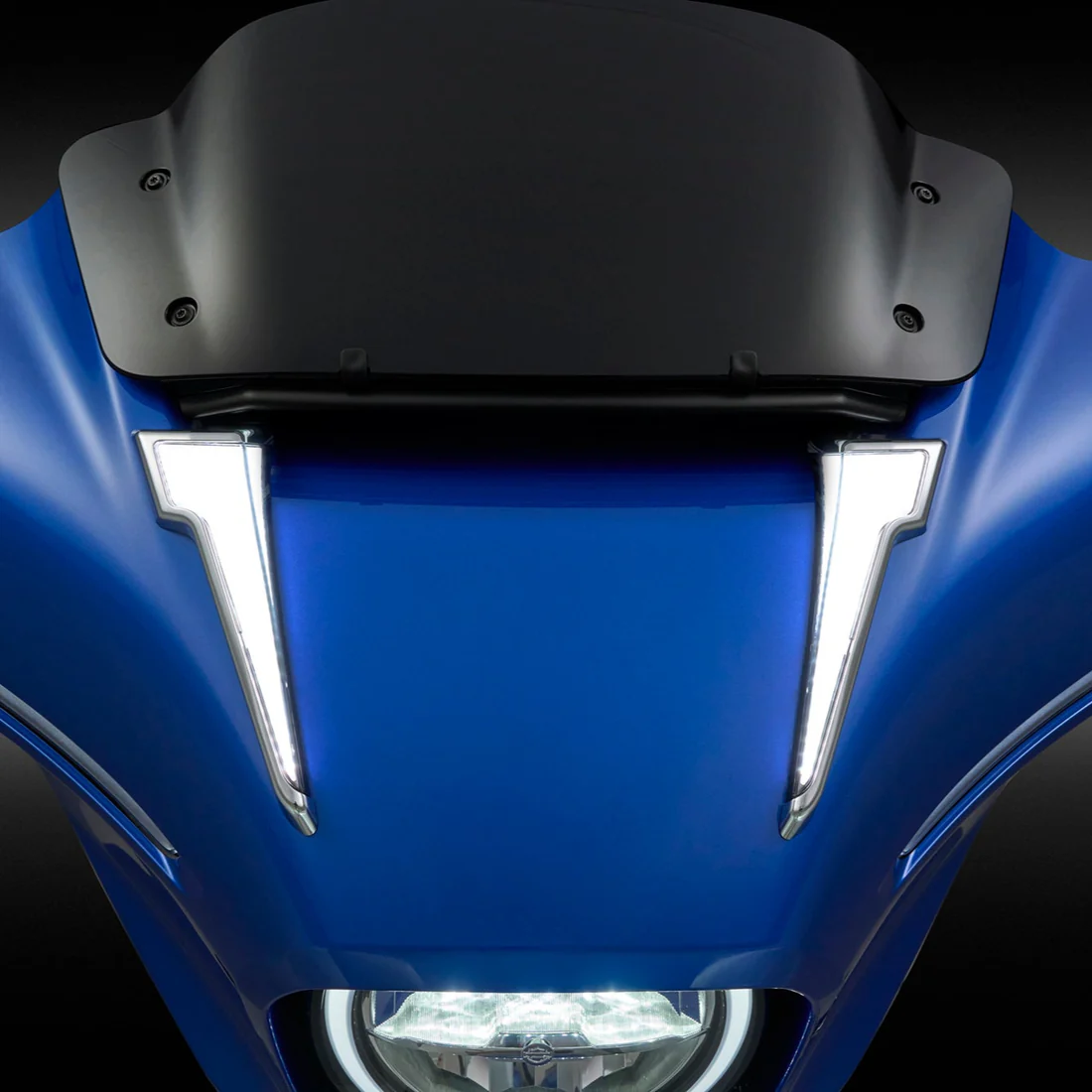 Take your Harley-Davidson batwing fairing to the next level with the Ciro Quill LED Fairing Lights. Featuring ultra-bright LEDs and built-in turn signals, these Plug-N-Play lights enhance both style and visibility right out of the box. For even more dynamic features and customization, pair them with the Lightstrike COMMANDER™ to unlock advanced Lightstrike® features and customization.